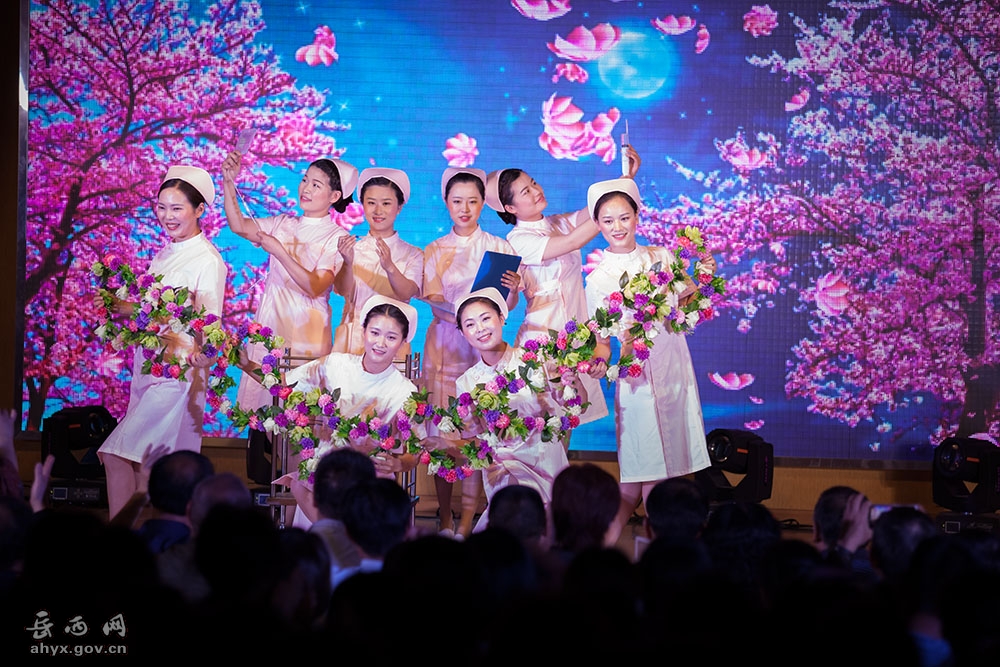 5月11日晚,岳西县医院的护士们在紧张忙碌的工作之余,精心排练,自编自导自演,呈现了一台节目形式多样、内容精彩纷呈的文艺晚会。晚会重点突出“健康脱贫,精准扶贫”的成效,以及“不忘初心 ,牢记使命”,宣传贯彻党的十九大精神,展示岳西县医院白衣天使们良好的精神风貌与无私奉献的职业精神。